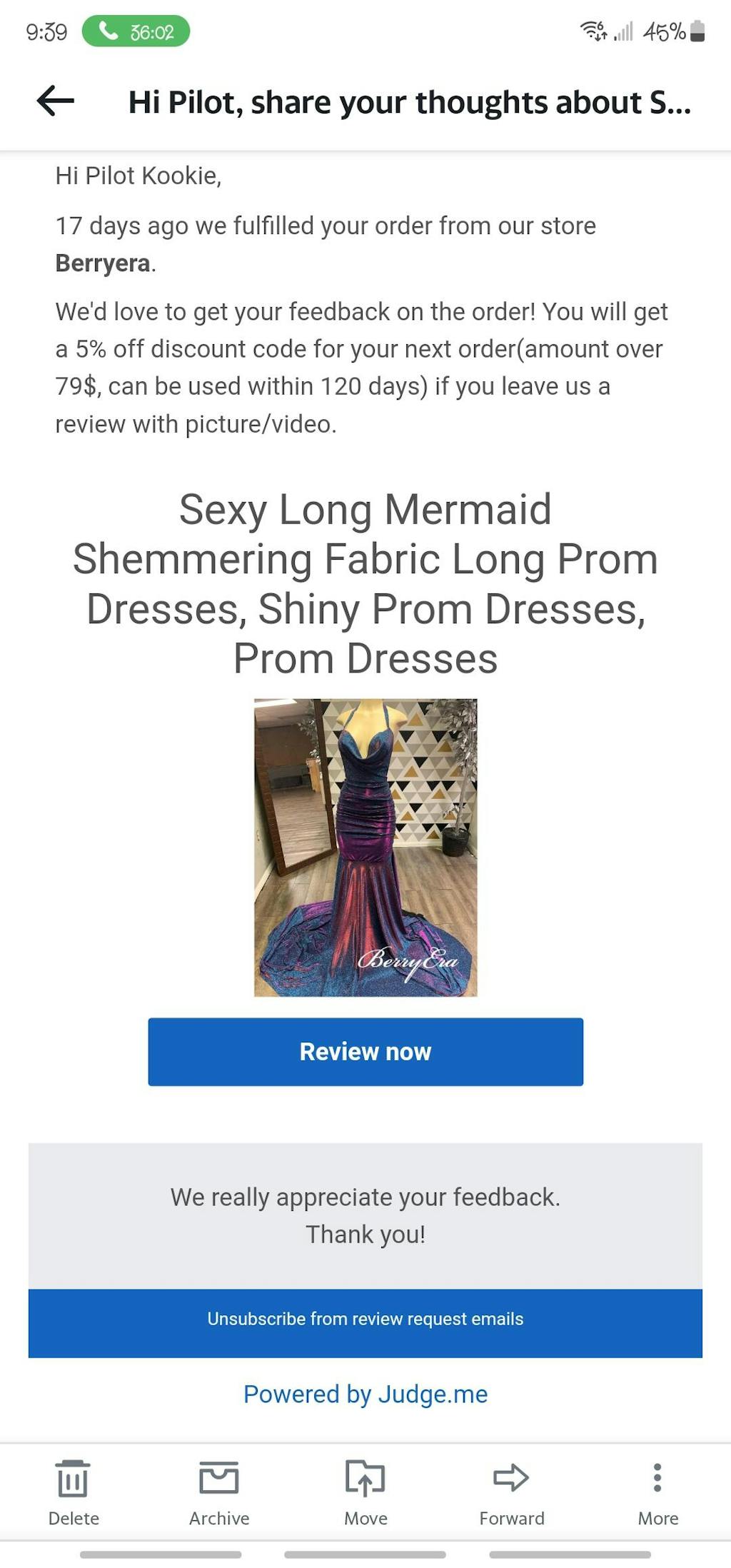 The dress came on time, too. Great service.